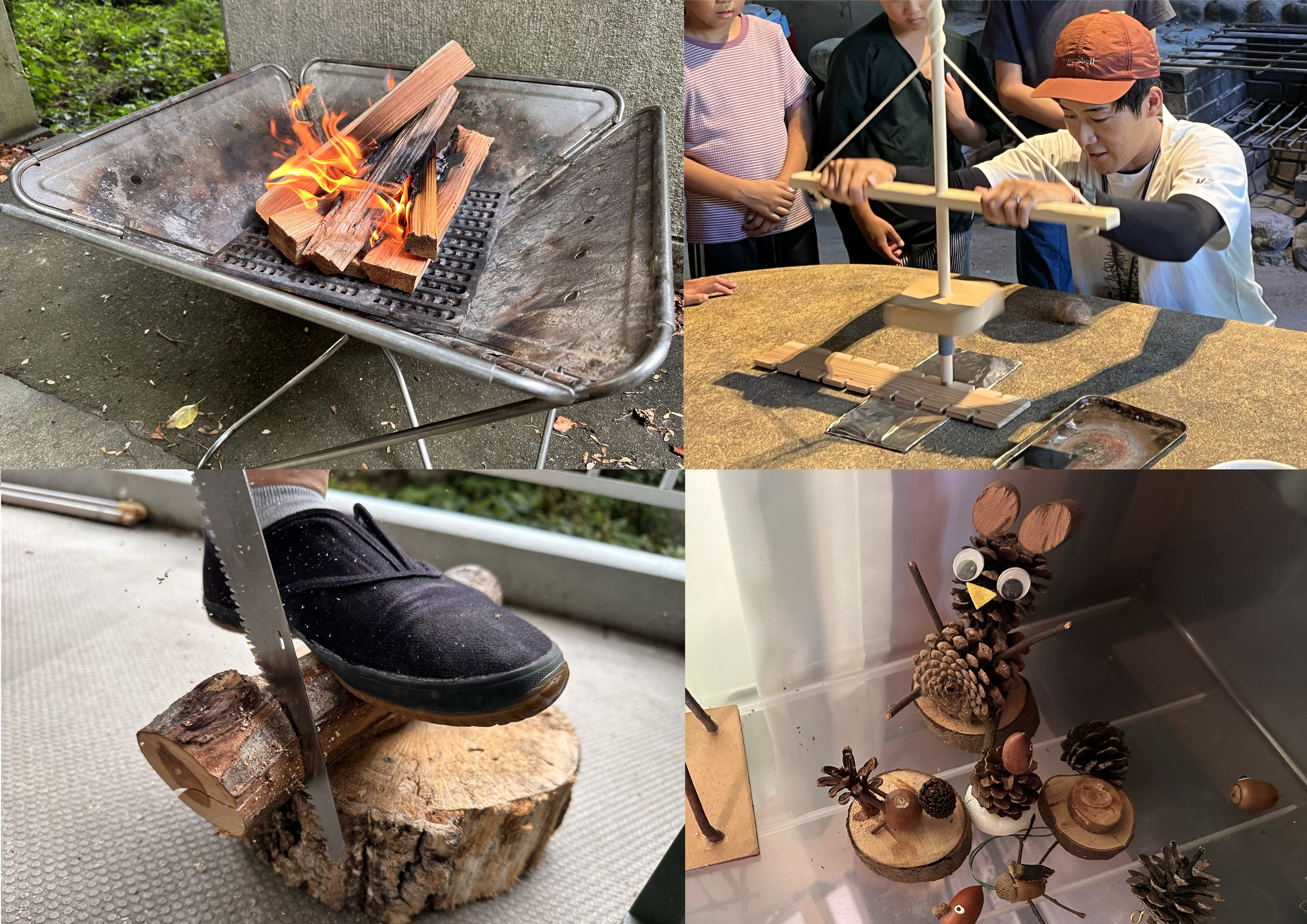 火おこしや焚き火体験、丸太切り、クラフトなど貴重な体験ができます!!